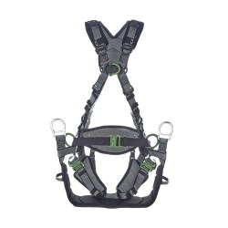 The V-FIT Tower Harness is designed for professionals performing tower climbing, maintenance, and other work-at-height tasks. Its vest-style design improves weight distribution and stability, while aluminum D-rings at the back, chest, and hips support multiple fall protection and positioning applications. Quick-connect aluminum buckles allow fast donning and adjustment, and integrated padding at the shoulders, legs, and waist enhances comfort during extended use. The harness also features a padded aluminum saddle plate, PFL tunnel, and RFID identification to support modern inspection and equipment management programs.