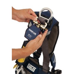 This single-leg connector is intended for use with Nano-Lok™ self-retracting lifelines where direct attachment to the back of a safety harness is required as part of a personal fall arrest system.