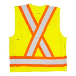 Le gilet d’arpenteur en polyester Kosto est conçu pour améliorer la visibilité des travailleurs dans les environnements de travail actifs où l’organisation, le confort et la conformité sont essentiels. Fabriqué en polyester tissé à 100 % avec un ruban réfléchissant de 4 po, ce gilet haute visibilité comprend une bande horizontale à 360° autour du torse ainsi que des bandes à l’avant et à l’arrière en configuration H et X afin d’assurer une meilleure visibilité sous plusieurs angles. Pensé pour une utilisation concrète sur le terrain, il combine respirabilité, durabilité et multiples espaces de rangement, tout en intégrant des sangles pour radio et une ouverture arrière compatible avec le port d’un harnais de sécurité. Il constitue donc un excellent choix pour l’arpentage, le contrôle de la circulation, la construction et les opérations générales sur chantier.