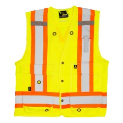 Ce gilet de sécurité de style arpenteur est conçu pour les travailleurs qui ont besoin d’une haute visibilité, d’un rangement fonctionnel et d’un confort léger pendant des tâches actives à l’intérieur comme à l’extérieur. Sa configuration de poches, ses éléments conçus pour la radio et son ouverture pour harnais le rendent particulièrement utile lorsque les travailleurs doivent transporter de petits outils ou des appareils de communication tout en demeurant visibles et conformes.